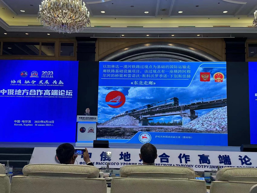 薩哈(雅庫特)共和國政府副主席斯捷潘諾夫、阿穆爾州吸引投資署副署長(zhǎng)赫姆拉·謝爾蓋及雅庫特鐵路股份公司執(zhí)行董事顧問阿布拉莫夫·阿列克謝先后在不同的專場(chǎng)活動(dòng)中就漠河-加林達(dá)國際運(yùn)輸走廊項(xiàng)目進(jìn)行推介,重點(diǎn)闡述了項(xiàng)目的廣闊發(fā)展前景及實(shí)施計(jì)劃。