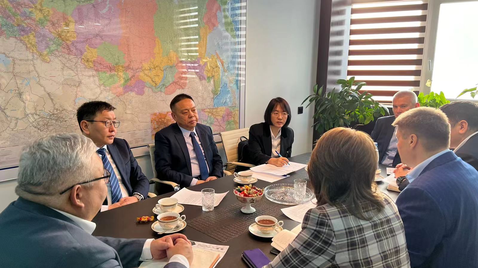 薩哈(雅庫(kù)特)共和國(guó)工業(yè)地質(zhì)部部長(zhǎng)捷列先科、交通和道路管理部部長(zhǎng)西夫采夫、對(duì)外聯(lián)絡(luò)和民族事務(wù)部部長(zhǎng)加夫里爾以及雅庫(kù)特鐵路公司總經(jīng)理希莫欣、俄羅斯駐華貿(mào)易代表處薩哈(雅庫(kù)特)共和國(guó)常駐代表安德烈耶夫共同出席會(huì)談。